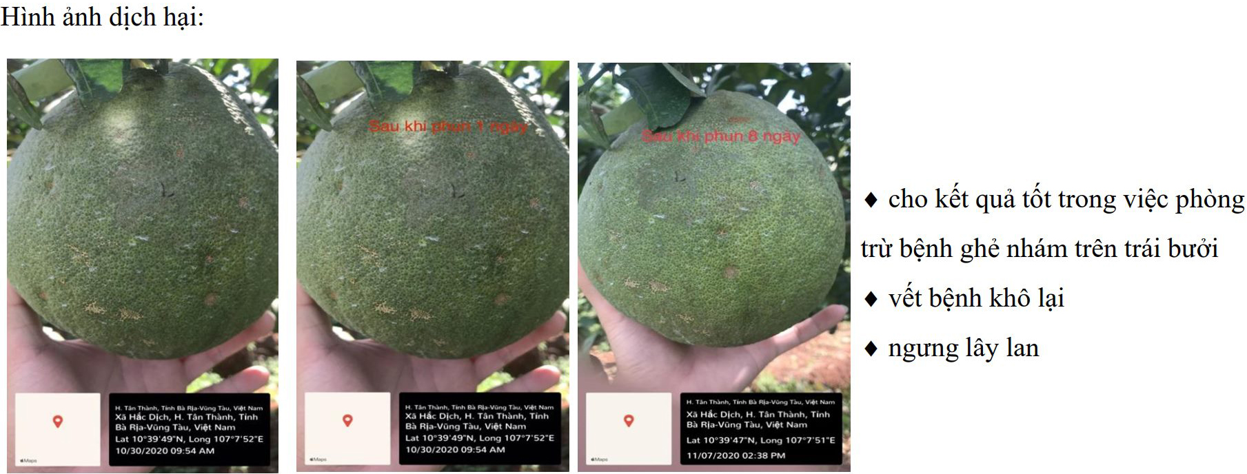 Hướng dẫn sử dụng | - Trên đối tượng (cam, bưởi, nho, chanh, xoài, sầu riêng,vải, nhãn, cà phê, khoai tây) : · Pha 1kg với 100 lit nước hoặc 4 bình 25 lít nước. - Trên đối tượng ( thanh long, chuối, cà chua) : · Pha 1kg với 200 lít nước hoặc 8 bình 25 lít nước. - Lưu ý : · phun sơm khi bệnh chớm xuất hiện. · Không pha chung với các thuốc có chứa lưu huỳnh, phốt pho và gốc đồng.