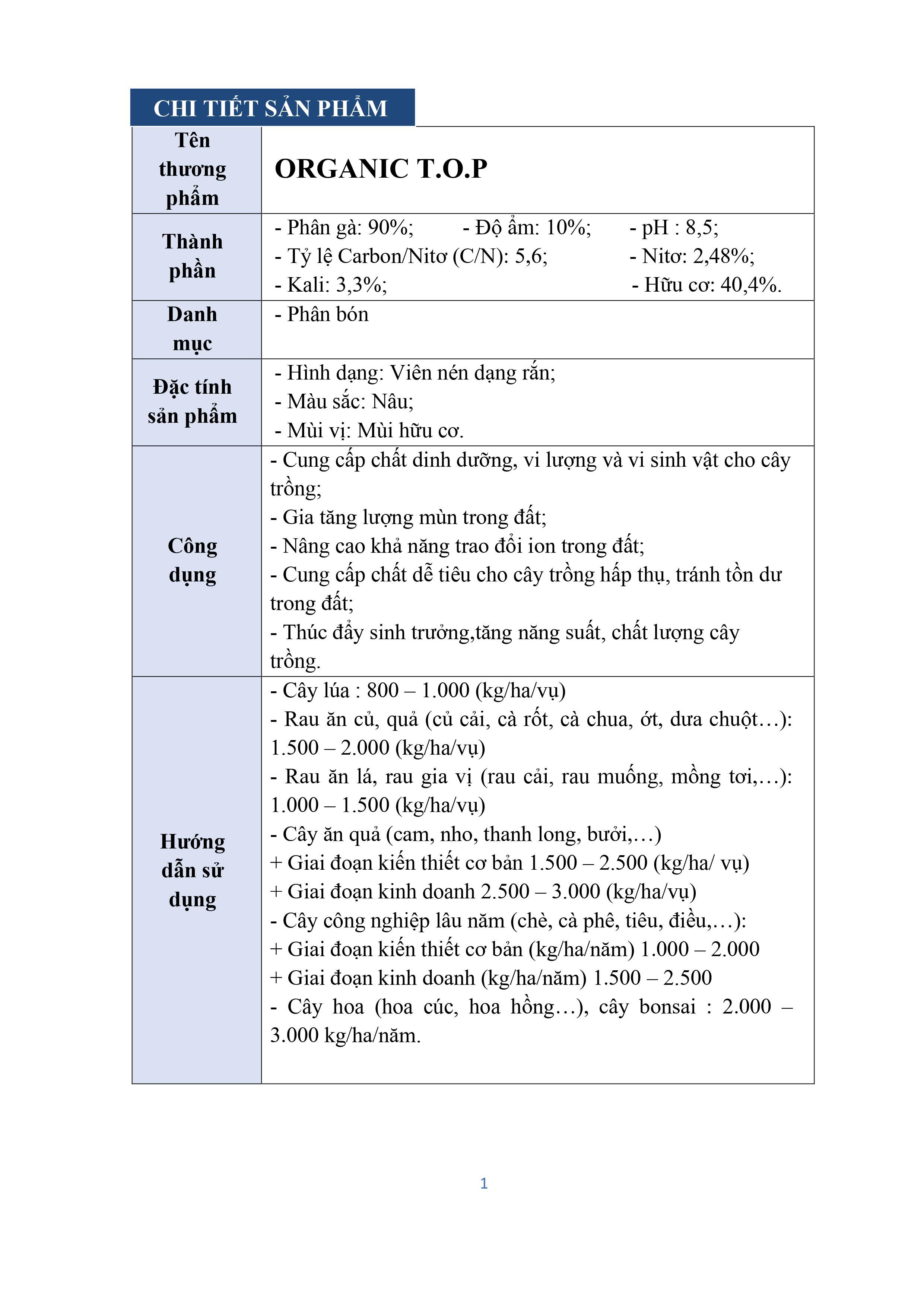 - ORGANIC T.O.P giúp cây trồng dễ dàng hấp thụ các chất dinh dưỡng, tăng khả năng sinh trưởng và phát triển của cây trồng;